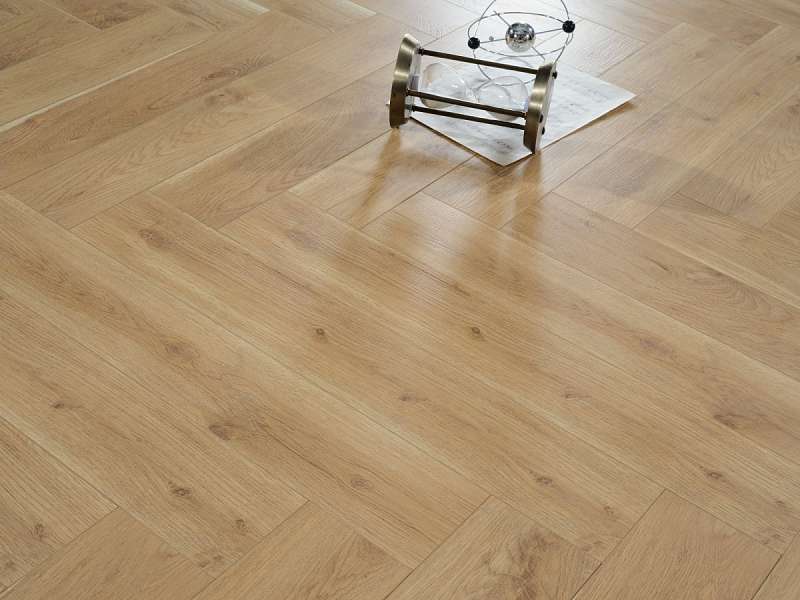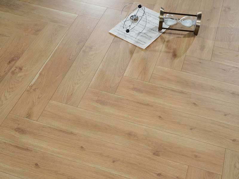 Это полностью готовое покрытие. Оно не требует финишной отделки – верхний слой с "Елочкой" рисунком прекрасно вписывается в любое оформление комнаты и хорошо смотрится со всеми настенными и потолочными материалами. Толщина доски составляет 12мм, что позволяет сделать пол прочным, устойчивым к прогибу. Ламинированная панель выдерживает большой вес мебели, на ней не остается следов от ножек и царапин. Материал хорошо держит тепло внутри помещения, не пропускает внутрь холод.